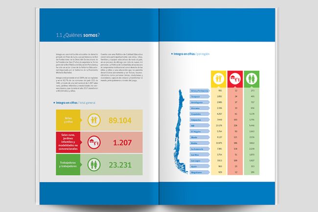 Diseño y diagramación del reporte anual de al Fundación Integra.